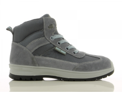 leather shoe, grey, Nylon mesh lining, antistatic, puncture resistant steel sole, shock proof, slip resistant, steel toecap, S1P, PU/PU outsole.