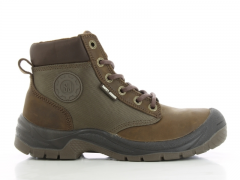 Leather shoe, water repellent, brown, Nylon mesh lining, antistatic, puncture resistant steel sole, shock proof, antislip, steel toe cap, S3 PU/PU sole.