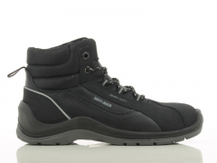 leather shoe, black, Nylon mesh lining, antistatic, puncture resistant steel sole, shock proof, slip resistant, steel toecap, S1P, PU/rubber outsole.