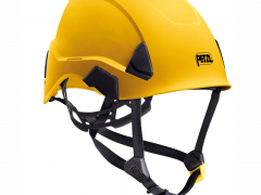- DUAL chinstrap allows the worker to adjust chinstrap strength in order to adapt the helmet to different environments: work at height (EN 12492) or on the ground (EN 397). The clip has two positions, corresponding to these two uses: high strength, limiting the risk of losing the helmet during a fall, and low strength, limiting the risk of strangulation if the helmet is snagged while the user is on the ground
